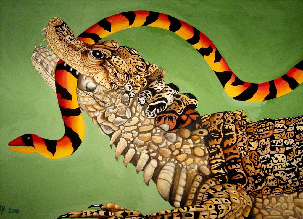 Homage to Maria Sybilla Merian 0 October 7, 2018October 7, 2018 Written by Sue colourful image of a crocodile’s head with a red black and yellow snake in its jaws Share this: Click to share on X (Opens in new window) X Click to share on Facebook (Opens in new window) Facebook Click to email a link to a friend (Opens in new window) Email Click to share on Pinterest (Opens in new window) Pinterest Like Loading...